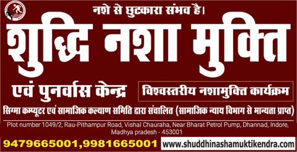 India is grappling with the increasing menace of drug abuse in children, adolescents, and adults. Drug abuse is a major concern for so many families in India because of the way it has systematically destroyed the lives of the addicts as well as those of their families. Drug abuse often results in psychological, physical, intellectual, and moral decay. The best treatment to quit drugs and alcohol you will only get here in our deaddiction center in Indore. Our Rehabilitation center in Indore is one of the best rehabs in all over MP. Nasha Mukti Kendra Indore Contact Number 09981665001. Powered by our expertise and competence, “Shuddhi Nasha Mukti Kendra indore” has become one of the reckoned nasha mukti centres in the country. शुद्धि नशा मुक्ति केंद्र इंदौर